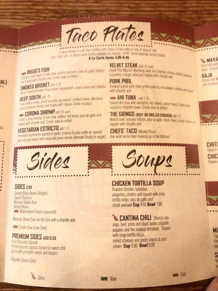 2 tacos served on soft flour tortillas with choice of 2 sides.