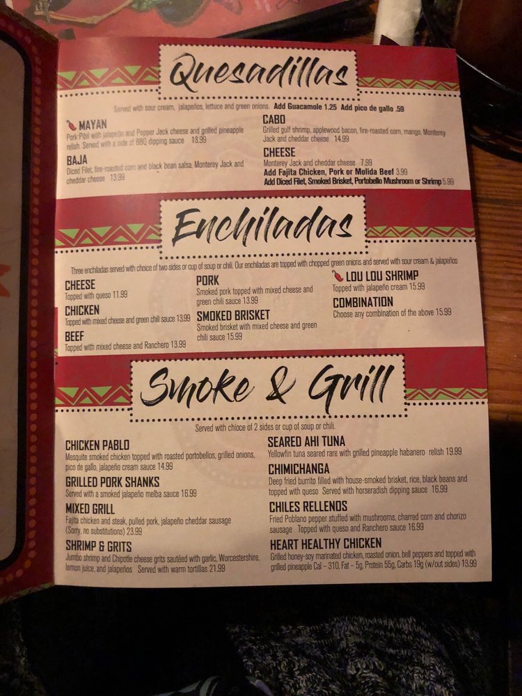 Seasoned corn masa, smoked pork mixed with peppers and steamed in a corn husk, served with Ranchero sauce. Make it smothered: topped with queso, sour cream, pico de gallo, and guacamole for an additional charge.